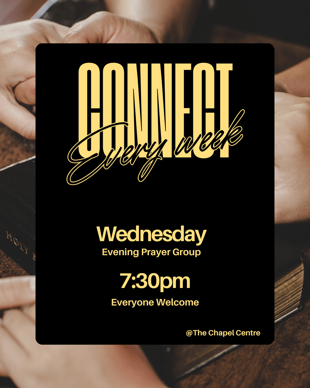 Revive your midweek slump at Wednesday Connect! We start with an open prayer session, followed by a relaxed discussion on the Sunday teaching. Chat, reflect, and enjoy fellowship with others. We also eat together every now and again!
